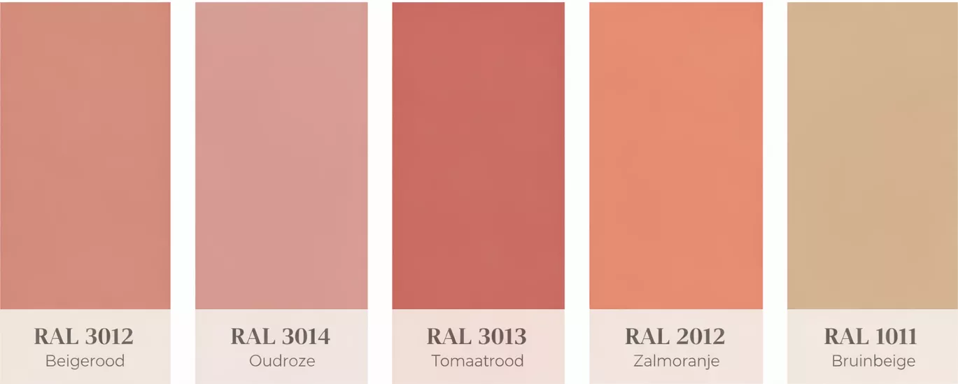 Kort gezegd: RAL 3012 is warmer dan beige, subtieler dan rood en minder zoet dan oudroze.