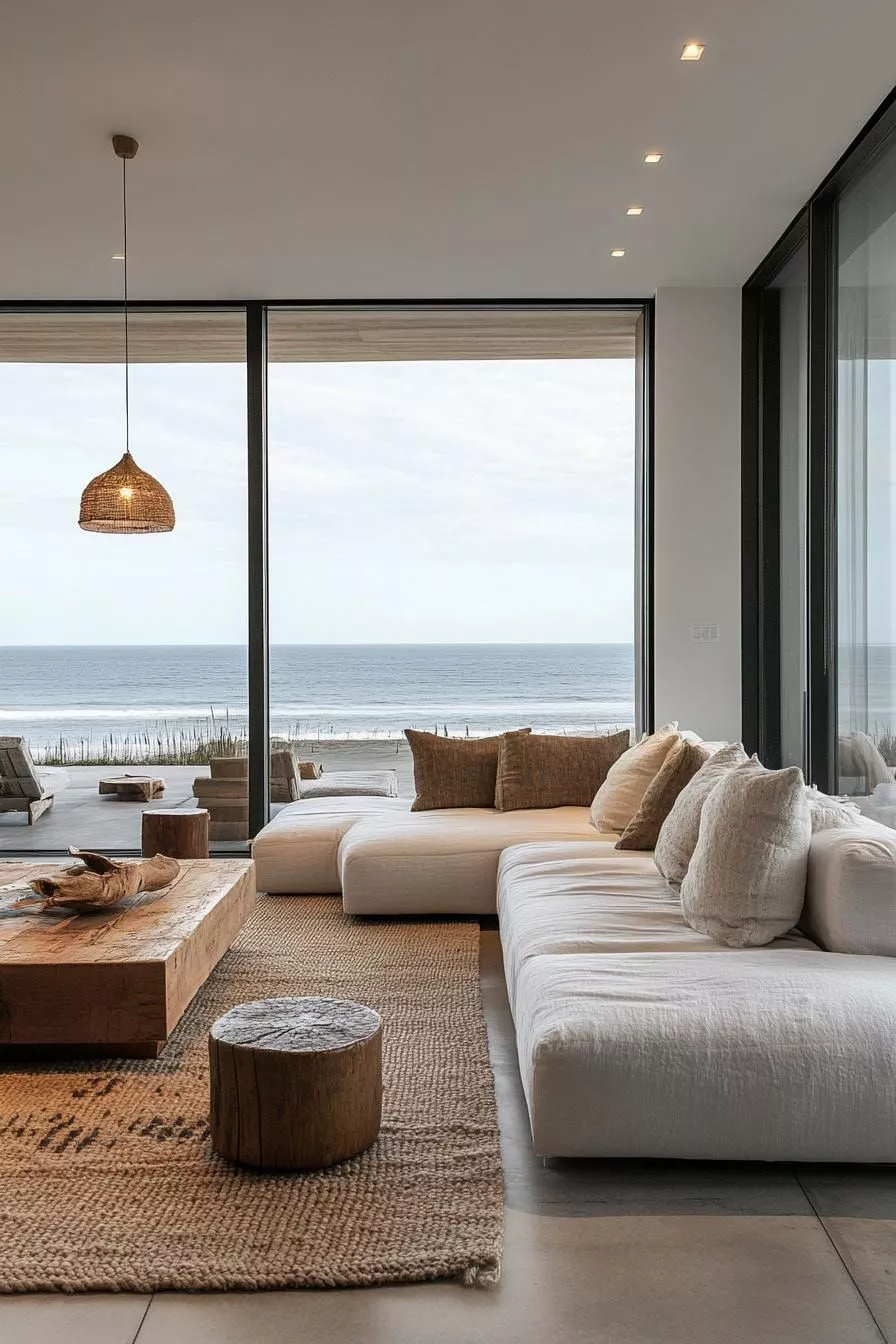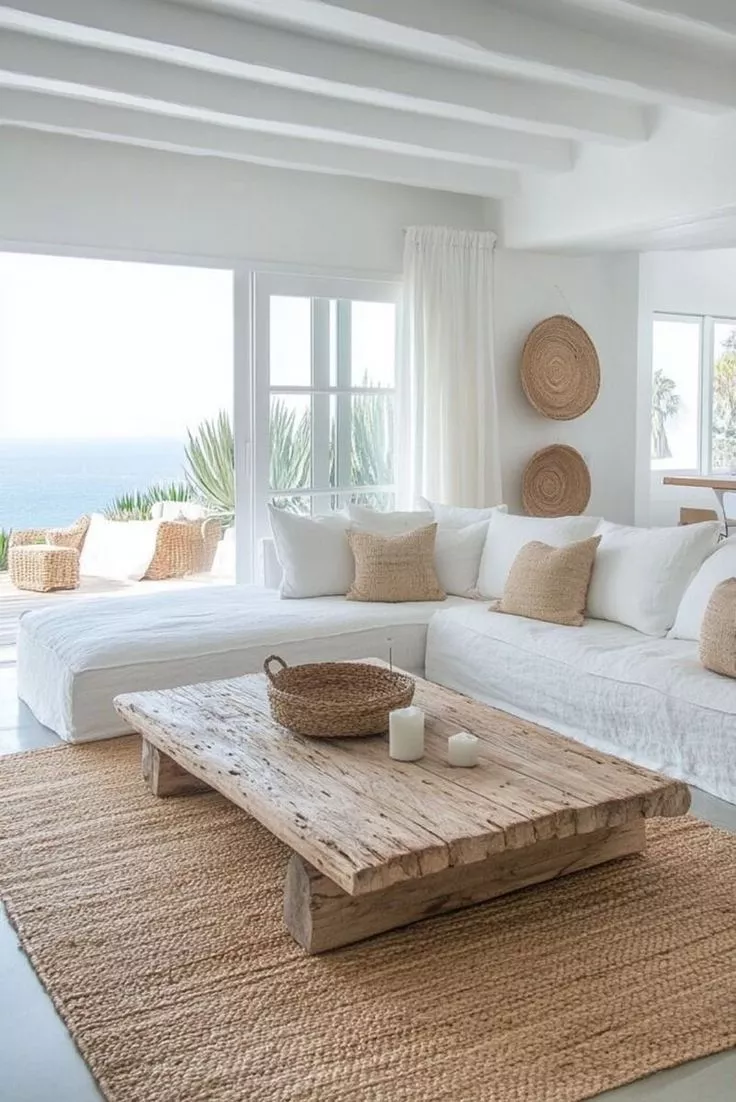 Bij de California Beach woonstijl draait alles om licht, lucht en natuurlijke eenvoud. Kies daarom voor een rustige basis met lichte tinten en zorg dat de ruimte zoveel mogelijk daglicht opvangt. Combineer natuurlijke materialen zoals hout, rotan, linnen en jute om warmte en textuur toe te voegen zonder de luchtige uitstraling te verliezen. Houd de inrichting ruim en open: vermijd te veel meubels en kies liever voor een paar grotere stukken dan voor veel kleine accessoires. Tot slot mogen gestylede elementen er best wat nonchalant uitzien. Een losjes gedrapeerde plaid of een mand met strand-items past perfect binnen de ontspannen, Californische vibe.