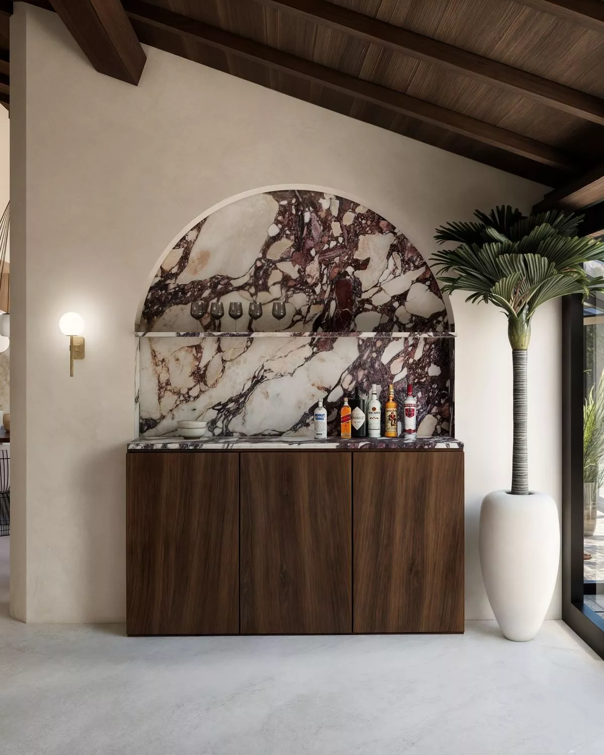 Marmer is hét materiaal bij uitstek voor de hotel chique stijl. Het straalt direct luxe en elegantie uit, of het nu op de vloer, als werkblad in de keuken, of zelfs in accessoires wordt gebruikt.